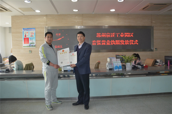3月18日上午,市民劉有松在園區(qū)領(lǐng)取了其經(jīng)營的蔬果零售店營業(yè)執(zhí)照,這是園區(qū)市場監(jiān)督管理局成立以來發(fā)放的第一張營業(yè)執(zhí)照。園區(qū)黨工委委員、管委會副主任戈亮出席發(fā)放儀式。