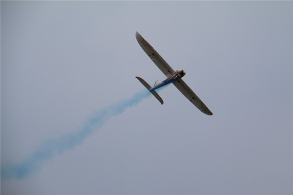 頭頂藍天白云,腳踩綠蔭草地,伴著音樂,聽著講解,宿蘇外的學(xué)子以及家長們滿臉的喜悅,他們仰望著一架架航空飛機模型飛上天空,不時發(fā)出“啊……啊……”的驚呼聲。