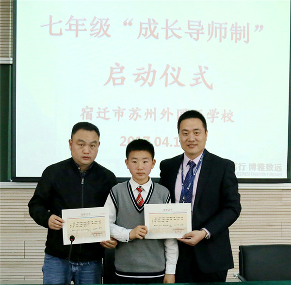近日,宿遷市蘇州外國語學(xué)校七年級16位孩子和他們的家長監(jiān)護(hù)人還有他們新認(rèn)的“干爹”“干媽”齊聚學(xué)校階梯教室,舉行隆重的簽約儀式。這些“干爹”“干媽”是學(xué)校給首批孩子們配的成長導(dǎo)師,每位教師與一個孩子結(jié)對,全方位關(guān)心孩子的成長,陪伴孩子們一起度過快樂而充實(shí)的初中生活,力求“個個進(jìn)步,人人成星”。“成長導(dǎo)師制”這種親情化、個性化、人本化的育人模式,是宿蘇外實(shí)施素質(zhì)教育,提升教育核心競爭力的需要;是宿蘇外服務(wù)家長,擴(kuò)大教育品牌影響力的需要;是宿蘇外回報(bào)社會,落實(shí)“兩聚一高”,建設(shè)和諧社會的需要。